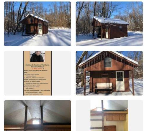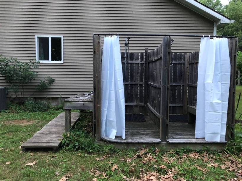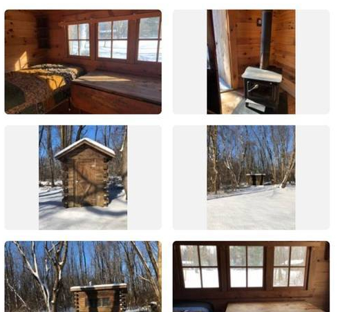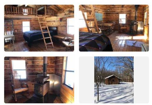 There are 3 private cabins on the property. Two are rustic, with no electricity or running water; one has electricity. All have heated outdoor showers, but any occupant of the cabins is welcome to bathe in the main house, if preferred. Each has woodstove heat.