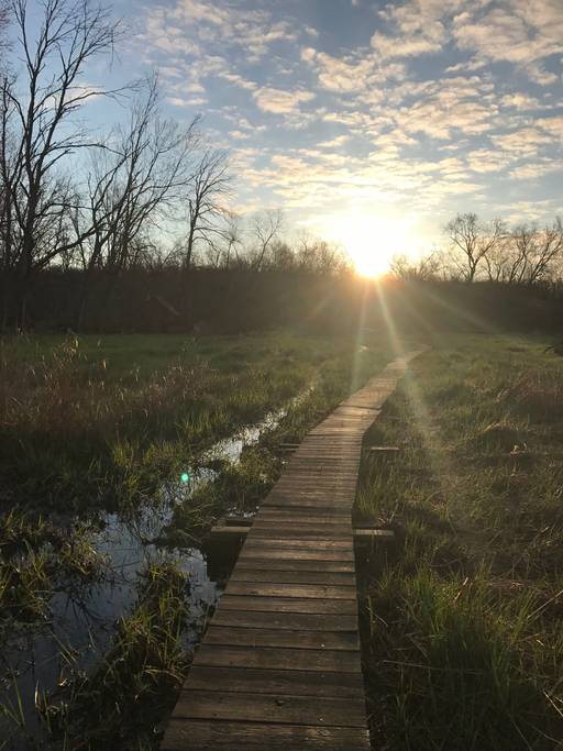 The retreat property spans more than 60 acres of wetland, including a full house for retreat-goers and several cabins (most of which are located close to the owners’ home). The cabins are about a mile hike from the main house, but you can also drive to them and park out front.